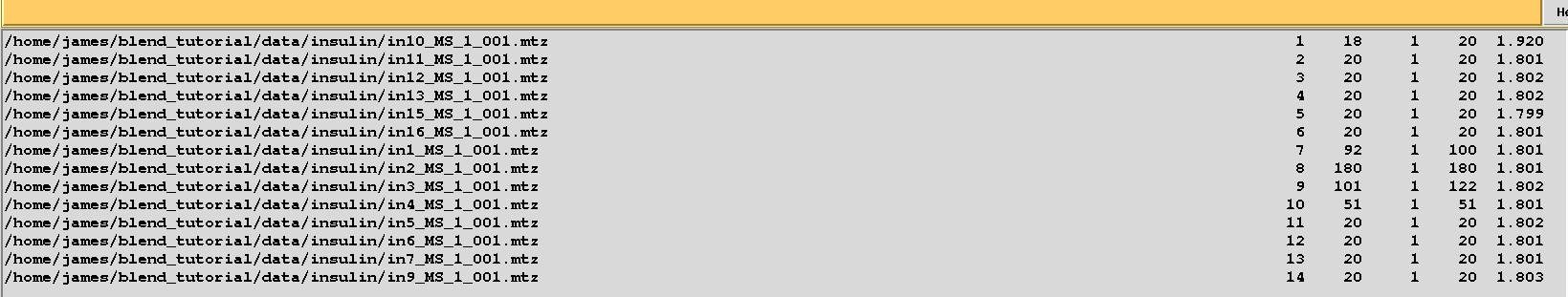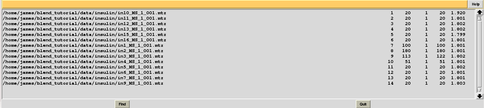 In order to show how to make use of this file suppose we are not any longer interested in the last 4 data sets. We first copy “mtz_names.dat” into a file called “original.dat”, in a newly-created directory called “amended_insulin”: