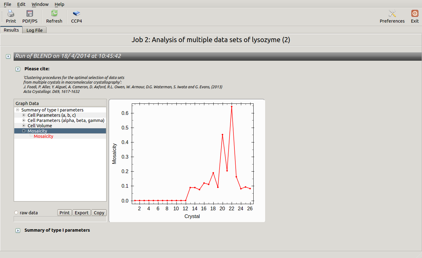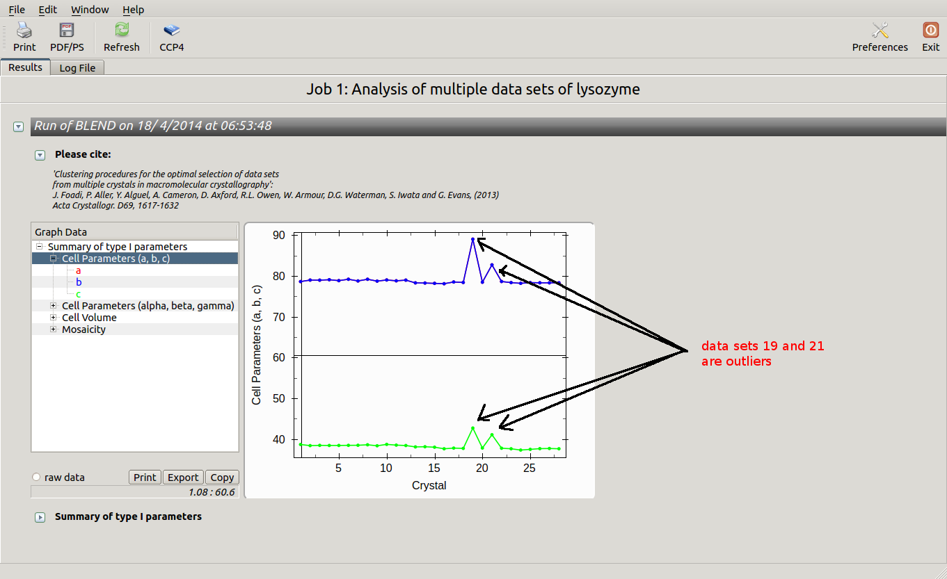 All keywords with their meaning are explained in BLEND documentation. After the run in analysis mode, we can look at the output using ccp4i “View Files from Job → View Job Results (new style)”: