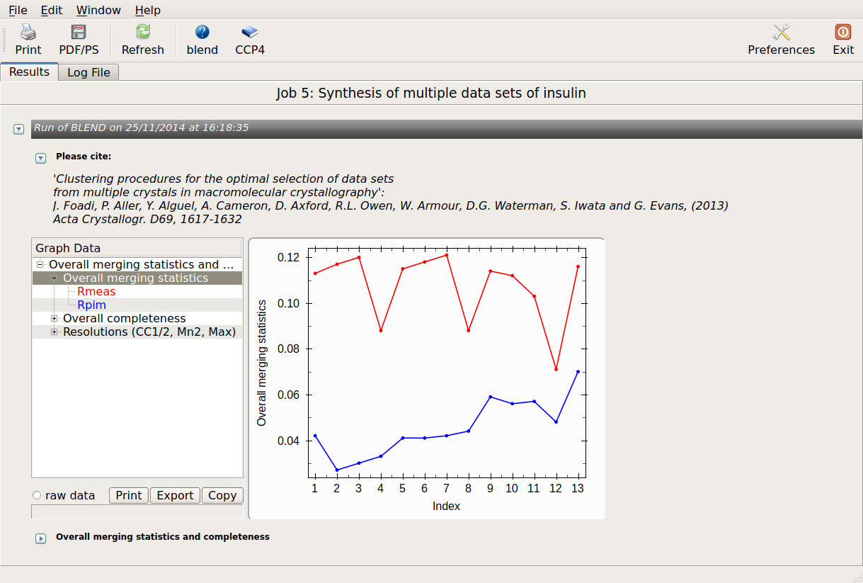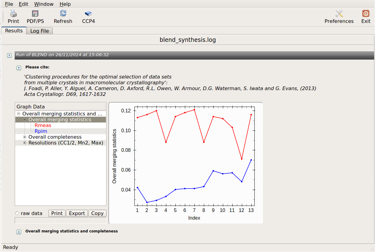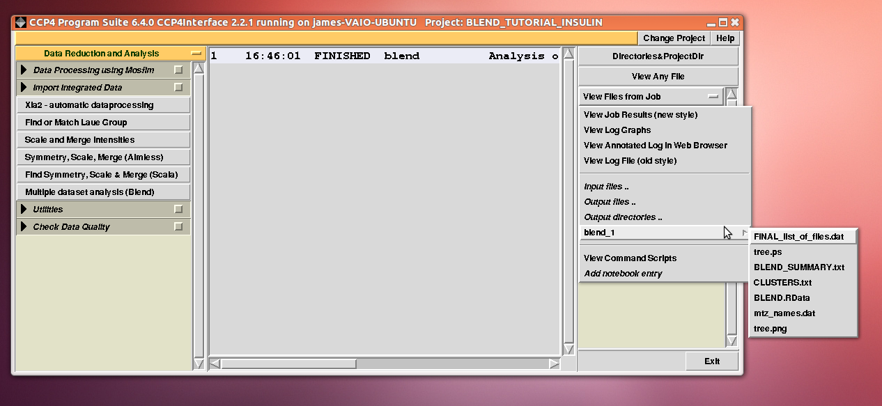After completion, "blend_analysis.log" can be either read using any editor, or viewed graphically with the CCP4 program "logview":