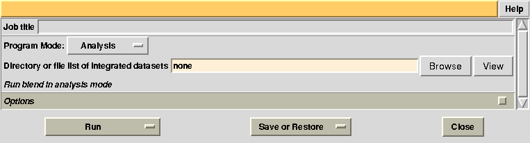 In the CCP4 GUI, BLEND can be found either in the “Data Reduction and Analysis” or the “Program List” section on the left. Once initiated, the BLEND section looks like the following:
