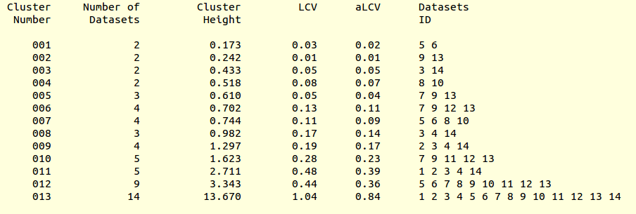 LCV and aLCV values for all clusters are reported in the file “CLUSTERS.txt”: